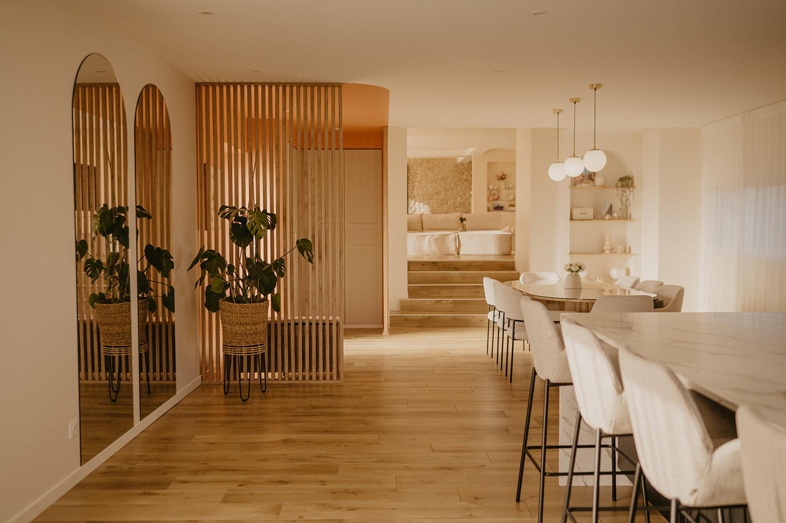 Des espaces élégants mêlant matières naturelles, douceur et caractère, pour un intérieur vivant et unique.